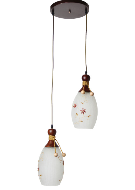 Высота (мм): 1100; Ширина (мм): 330; Тип цоколя: Е27; Количество источников света: 2; Максимальная мощность люстры (Вт): 80; Вес (г): 2300; Цвет основы: Коричневый; Размер плафона (мм): 210; Тип крепления на потолок: Планка; Материал основы: Металл, дерево; Материал патрона: Термопластик; Материал плафона: Стекло; Стиль: Кантри; Площадь помещения: до 10 кв.м; Высота потолка: от 250 см до 320 см;