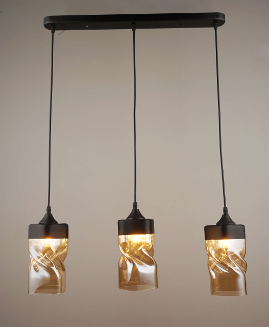 Высота (мм): 1000 мм; Ширина (мм): 635 мм; Тип цоколя: Е27; Количество источников света: 3; Максимальная мощность люстры (Вт): 120; Цвет основы: Черный; Размер плафона (мм): 200; Материал основы: Металл; Материал патрона: Термопластик; Материал плафона: Стекло; Цвет плафона: Черный+золото; Стиль: Лофт; Площадь помещения: от 10 до 20 кв.м; Высота потолка: от 250 см до 320 см; Тип монтажа: Планка;
