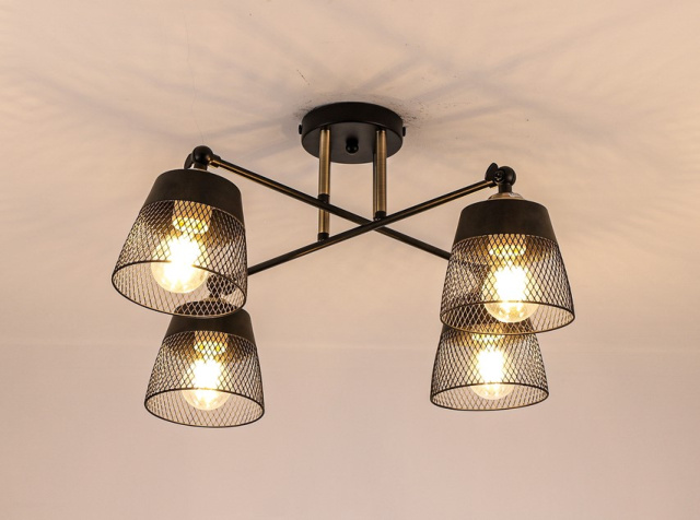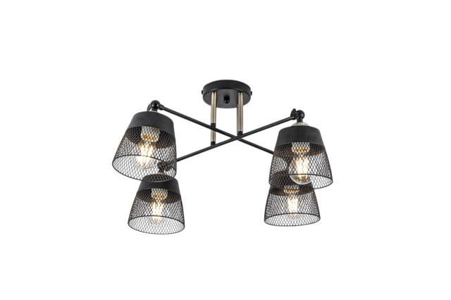 Высота (мм): 400 мм; Ширина (мм): 550 мм; Тип цоколя: Е27; Количество источников света: 4; Максимальная мощность люстры (Вт): 160; Цвет основы: Бронза+черный; Материал основы: Металл; Материал патрона: Термопластик; Материал плафона: Металл; Цвет плафона: Черный; Стиль: Модерн; Площадь помещения: от 20 до 30 кв.м; Высота потолка: до 250 см; Гарантия: 24 месяца; Тип монтажа: Монтажная планка;
