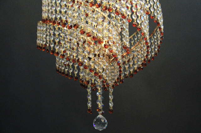 Высота (мм): 900; Ширина (мм): 380; Тип цоколя: Е27; Количество источников света: 5; Максимальная мощность люстры (Вт): 300; Вес (г): 3600; Цвет основы: Золото (гальваника); Тип крепления на потолок: Крючок; Материал основы: Металл; Материал патрона: Термопластик; Длина цепи (мм): 200; Цвет хрусталя : Белый+коричневый; Стиль: Классика; Площадь помещения: от 10 до 20 кв.м; Высота потолка: от 320 см до 400 см;
