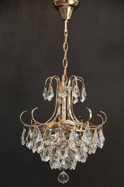 Высота (мм): 700; Ширина (мм): 350; Тип цоколя: Е27; Количество источников света: 3; Максимальная мощность люстры (Вт): 180; Вес (г): 4000; Цвет основы: Золото (гальваника); Тип крепления на потолок: Крючок; Материал основы: Металл; Материал патрона: Термопластик; Длина цепи (мм): 200; Цвет хрусталя : Белый; Количество в ящике (шт.): 1; Стиль: Классика; Площадь помещения: от 10 до 20 кв.м; Высота потолка: от 320 см до 400 см;