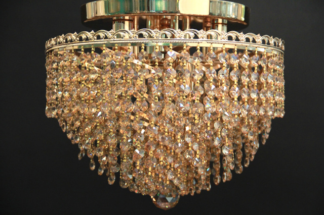 Высота (мм): 300; Ширина (мм): 350; Тип цоколя: Е27; Количество источников света: 6; Максимальная мощность люстры (Вт): 360; Вес (г): 3200; Цвет основы: Золото (гальваника); Тип крепления на потолок: Планка; Материал основы: Металл; Материал патрона: Термопластик; Цвет хрусталя : Янтарь; Стиль: Классика; Площадь помещения: от 20 до 30 кв.м; Высота потолка: до 250 см;