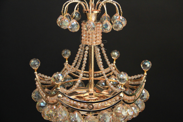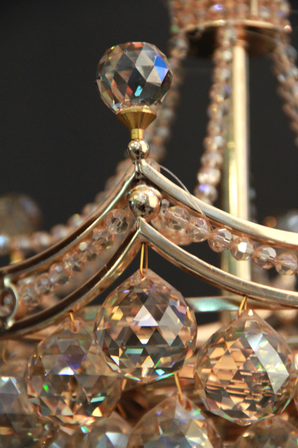 Высота (мм): 760; Ширина (мм): 300; Тип цоколя: Е27; Количество источников света: 6; Максимальная мощность люстры (Вт): 360; Вес (г): 8300; Цвет основы: Золото (гальваника); Тип крепления на потолок: Крючок; Материал основы: Металл; Материал патрона: Термопластик; Длина цепи (мм): 200; Цвет хрусталя : Янтарь; Стиль: Классика; Площадь помещения: от 20 до 30 кв.м; Высота потолка: от 320 см до 400 см;